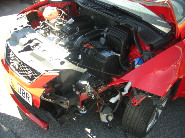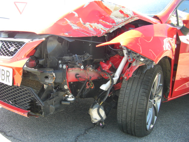 accidentado.vehiculo con golpe delantero izquierdo,arrancando y andando,vehiculo dotado con equipamiento fr de la seat inscrito en ficha tecnica,cd,clima,tempomat..
